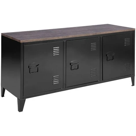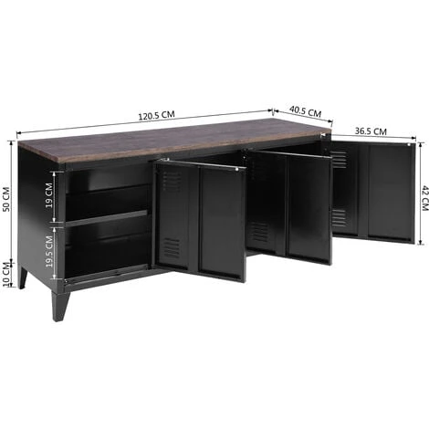 Meuble Bas Cabinet Métal Noir,avec Plateau En MDF