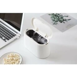 - The cute little trash can doesn’t take up much space on your table or counter and still holds a good amount of trash. For home and office, i. H. Craft room, office, living room, vanity, bathroom, kitchen, laundry room, office, garage, workshop and dormitory, etc.