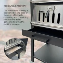 - Removable ash draw for easy cleaning after cooking
