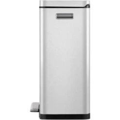 The matte silver X-Cube pedal bin from EKO is a stylish rectangular pedal bin with an extra wide pedal and a 30 L plastic inner bucket.
