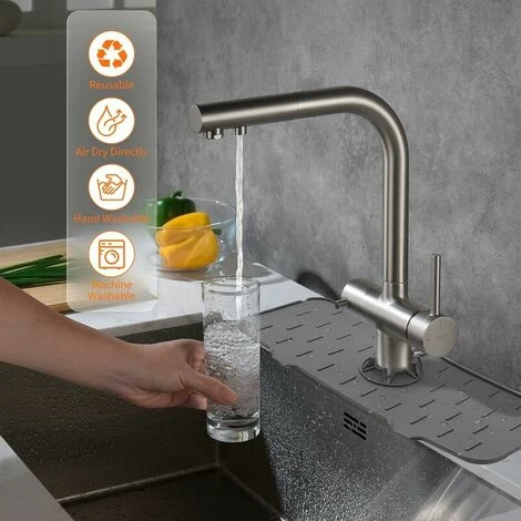 【Upgraded Version】The faucet splash catcher is made of food-grade silicone, which is environmentally friendly, not easy to deform and reusable. Unlike other fabric absorbent pads, our new Upgrade Kitchen Faucet Sink Mat adopts drainage design, protecting against splashing water from water. sink will catch the water and drain it into the sink. drying frequently, carpet around the faucet suitable for long-term use.