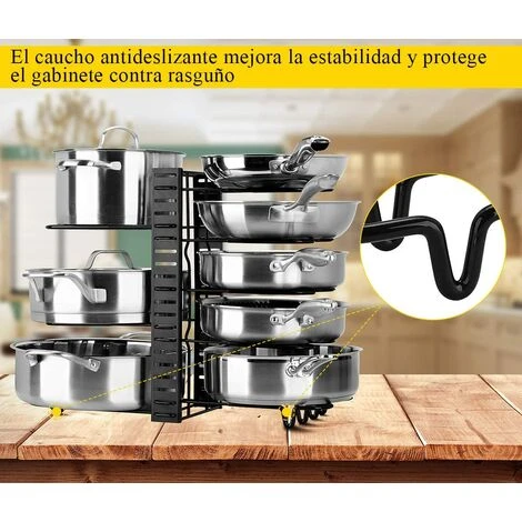 Kitchen storage: used; to organize 8 different sizes of pots, pans, lids, cookware, cutting boards cut out, etc. Set it up to store various pots, cutlery and cooking utensils. It can be disassembled. to save space.
