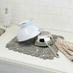 Variable size and great color: the size of the sink mat is 40 x 30 cm, it can be cut to any area you need depending on the bottom of the drain plug. The smoked color blends perfectly with the decor of stainless steel sinks and porcelain sinks. Healthy, safe and odorless: No terrible smell, this kitchen sink mat Has a built-in odorless material, it’s not like other mats that have a strong plastic smell. Easy to clean: To clean this plastic mat, please soak it in water soapy water and use a scrub brush or sponge to wash, then rinse and hang to air dry. Note: Please wash the mat immediately when soiled with spaghetti sauce.
