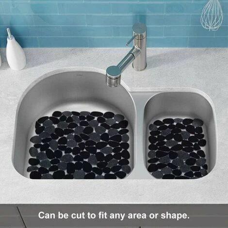 Modern design and practical functions: unique pebble design, this sink mat is made of heavy and flexible PVC, it can stay on the bottom of the sink to protect the surface of the sink sink from scratches and provide a cushion to dishes while washing.