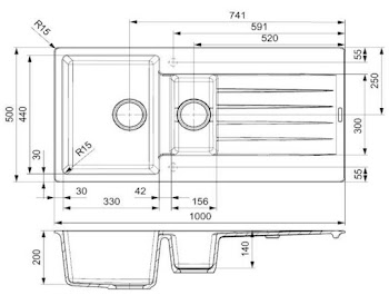 Reversible Drainer With 2 Pre-Punched Tap Holes This sink has a drainer which can be installed either on the left or the right-hand side of the bowl. There are 2 pre-punched tap holes, one at the top and another at the bottom so you can choose which you want to knock through and fit your tap accordingly. |