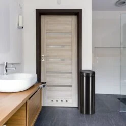 This automatic trash bin with a motion sensor is a practical accessory for your kitchen or bathroom. If your hands are full, simply wave your foot or arm over the sensor to open the steel bin. It will open automatically so you can easily throw away your home garbage into the metal container. The black rounded paper basket prevents the escape of unpleasant odours and is a true eye-catcher. It matches perfectly in almost any home.