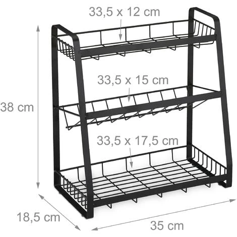 With the practical spice rack, you always have salt, pepper, curry, cumin, etc. at hand when cooking. The practical spice rack offers space on the 3 shelves for spice jars, herb pots, oils, tea tins or other dry supplies. Simply place the herb rack on the countertop or on the kitchen shelf. The middle level is suitable for storing bottles of vinegar and oil. The open, elegant lattice design gives you access to the contents at any time.