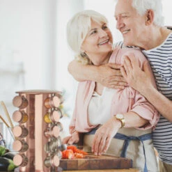 Organise and save space with this rotating spice rack that includes 20 spice jars for your kitchen. With its sleek design this spice rack can fit almost anywhere, and the glass spice jars are perfect for storing your dried herbs, as well as any other spices. Each spice jar contains an shaker insert, so you can easily season to your personal tastes. In addition to its aesthetic design, the transparent glass jar lets you easily identify where you put your spices.