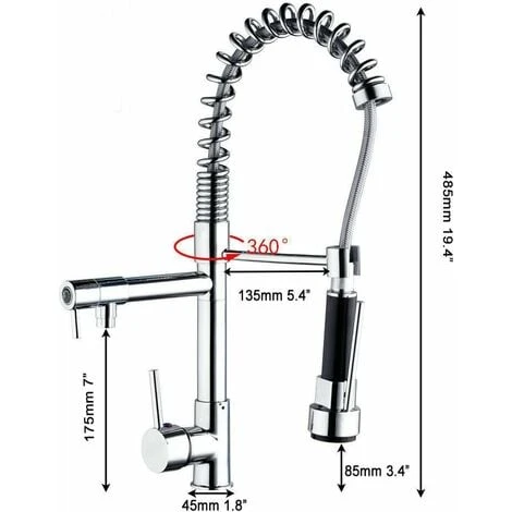 Kitchen Sink Mixer Tap: The kitchen tap is a lead-free all-metal structure that is safer and healthier. Faucet Height: 17.7″ (45cm); Outlet: 8″ (20cm); Outlet Height: 8″ (20cm)