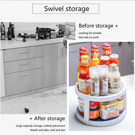 - 【ésave space】 This large hub has; spice is a rotating device, which means you can simply rotate it to access the spice. the item you need. This makes it easy to use in all rooms of your home but especially in the refrigerator with its minimal space.