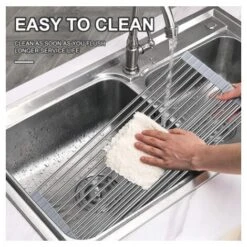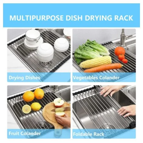 - Space Saving Dish Drying Rack: Foldable design, easy to store. When the sink drying rack is not using, you can easily roll it up and put it in your cabinet. Helps to keep your kitchen sink area neat and more organized.
