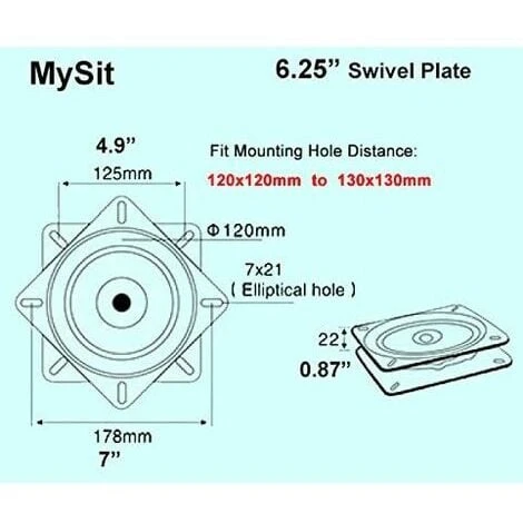 MOUNTING HOLE DISTANCE — 4.9 (Minmum 120x120mm; Maximum 130x130mm) , Hole size: 7*21mm (Mounting hardware not included).< br> STURDY AND WELL CONSTRUCTIVE – The swivel bar stools are made with high quality solid stainless steel ball bearing construction with a black coat finish. 2.0mm thickness, much thicker than ordinary swivel plate.