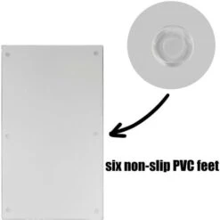 The surface is very hygienic and easy to clean, you only need a damp cloth and, if necessary, a washing-up liquid. Each glass board has six non-slip feet (approx. 2mm high) to prevent the ceramic glass hob or worktop from being scratched.