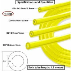 Specification: 4 Fuel hoses of 1.5 Meter each. 4 different sizes, 2 x 3.5mm, 2.5 x 5mm, 3 x 5mm, 3 x 6mm.