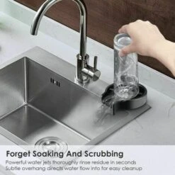 The glass rinser can remove residue in seconds at the same time. using just one tap, and can rinse most standard beverages including wine glasses, baby bottles and travel glasses.
