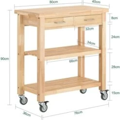 - Space saving solid wood kitchen trolley offers a lot of storage space for various utensils and bottles in your kitchen.