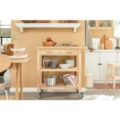 About this item-SoBuy Rubber Wood Kitchen Storage Trolley Cart with 2 Drawers & Shelves,FKW24-N