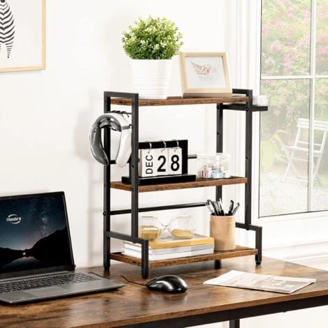 - Small Shelves with Great Strength: This desktop storage organiser is made of high-quality particleboard and sturdy metal. It uses three layers of shelves, which are compact and simple in structure. The counter shelves are strong enough to carry a lot of weight