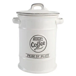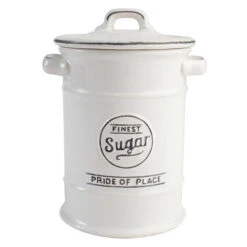 Finished in White with contrasting vintage wording, the styling is reminiscent of traditional enamelware.