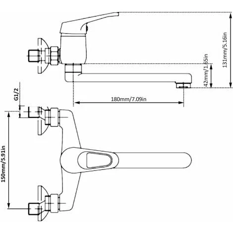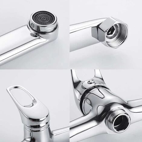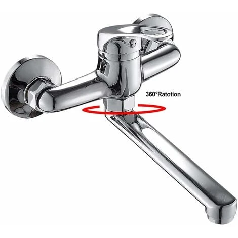 Wall-mounted kitchen mixer tap wall-mounted single-lever kitchen mixer tap with 360° rotation Long version for kitchen Chrome