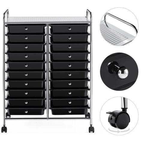 This 20-drawer storage trolley is provided with 4 wheels, 2 of which are lockable, ensuring both flexibility and stability. The design of the 20 vertically aligned drawers make full use of limited space, allowing users to store different items separately. Besides, each of the drawers can be removed separately, therefore, you can use it as a simple storage box on your office desks or install it back after filling.