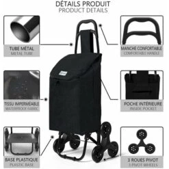 VOUNOT 6 Wheels Stair Climbing Shopping Trolley, 32L Oxford Black