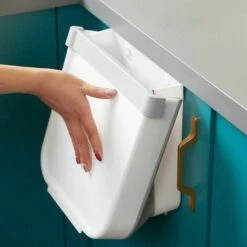 White – 10L No Folding Wall Mounted Cabinet Door Trash Can For Home Office Automatic